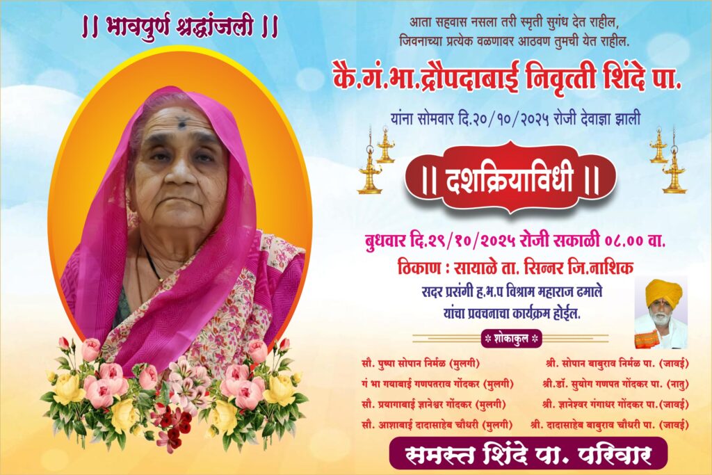 ЁЯМ╝ рд╕рд╛рдзреА-рдкреНрд░реЗрдорд│ рдЖрдгрд┐ рдХрд░реНрддреГрддреНрд╡рд╡рд╛рди рд╡реНрдпрдХреНрддреАрдорддреНрд╡- рдХреИ. рдЧрдВ.рднрд╛. рджреНрд░реМрдкрджрд╛рдмрд╛рдИ рдирд┐рд╡реГрддреНрддреА рд╢рд┐рдВрджреЗ рдкрд╛. рдпрд╛рдВрдЪреЗ рджрд╢рдХреНрд░рд┐рдпрд╛рд╡рд┐рдзреА