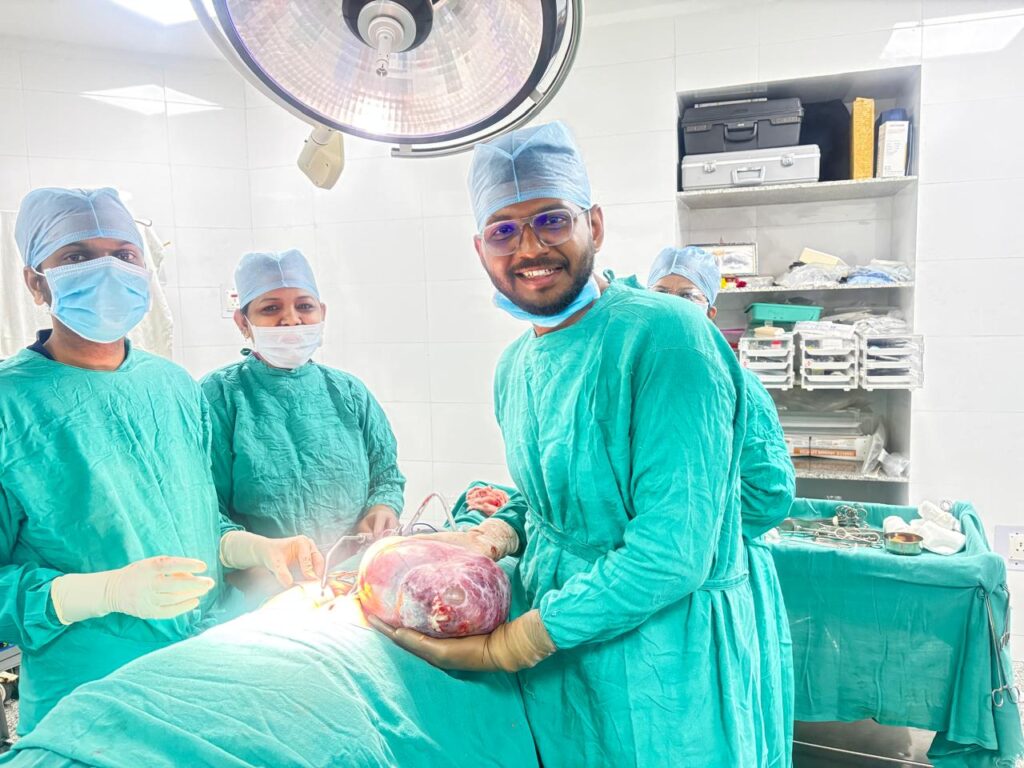 कोपरगाव येथील २७ वर्षीय निकिता गायकवाड या रुग्णेला बाळंतपणानंतर काही दिवसांपासून पोटात तीव्र वेदना व सूज जाणवत होती. तपासणीसाठी त्या श्री साईबाबा हॉस्पिटलमध्ये दाखल झाल्या असता सखोल तपासणीत पोटामध्ये मोठ्या आकाराचा ट्यूमर असल्याचे निदान झाले. परिस्थितीचे गांभीर्य लक्षात घेऊन तातडीने शस्त्रक्रियेचा निर्णय घेण्यात आला.