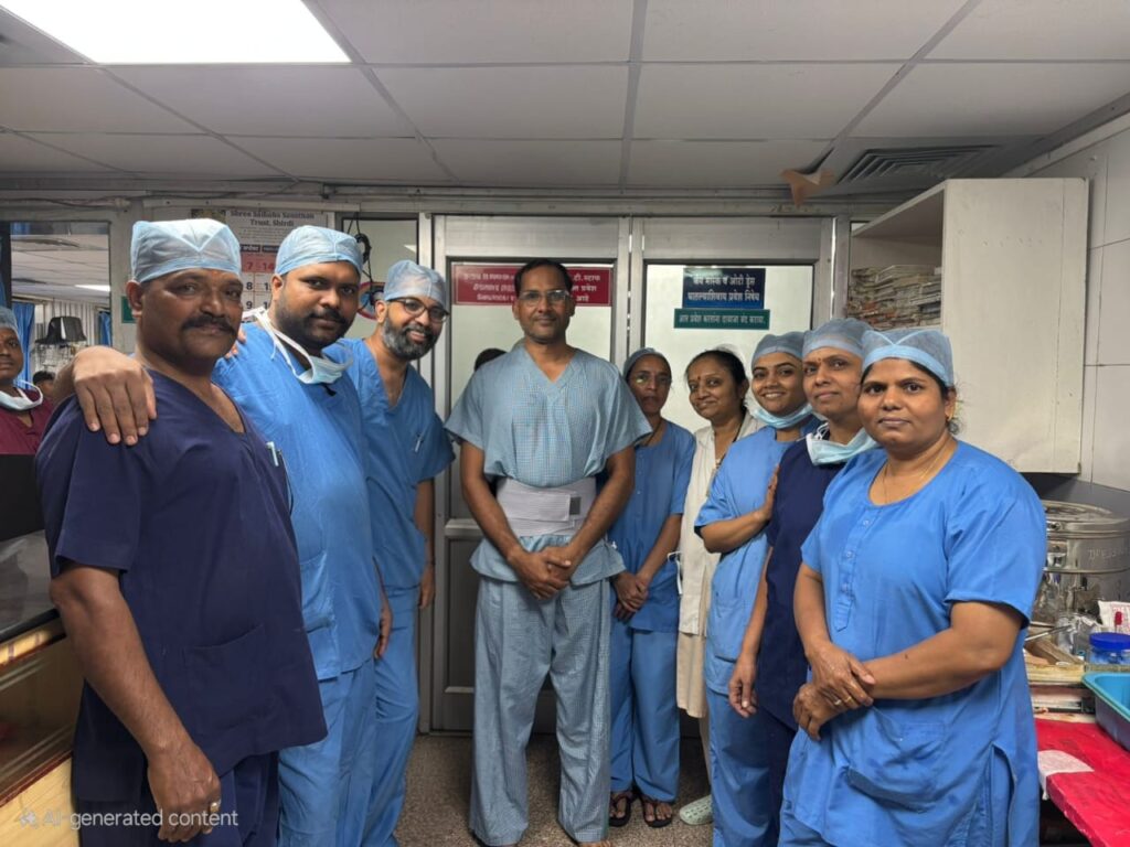 शिर्डी, दि. २८ (प्रतिनिधी) – शिर्डी येथील श्री साईबाबा संस्थानच्या श्री साईबाबा सुपर हॉस्पिटलमध्ये दुर्बीणद्वारे बिन टाक्याची इंडॉस्कोपी स्पाइन सर्जरी यशस्वीरित्या संपन्न झाली. ही शस्त्रक्रिया न्यूरो सर्जन डॉ. प्रसाद उंबरकर व भूलतज्ञ डॉ. संतोष सुरवसे यांच्या टीमने केली.