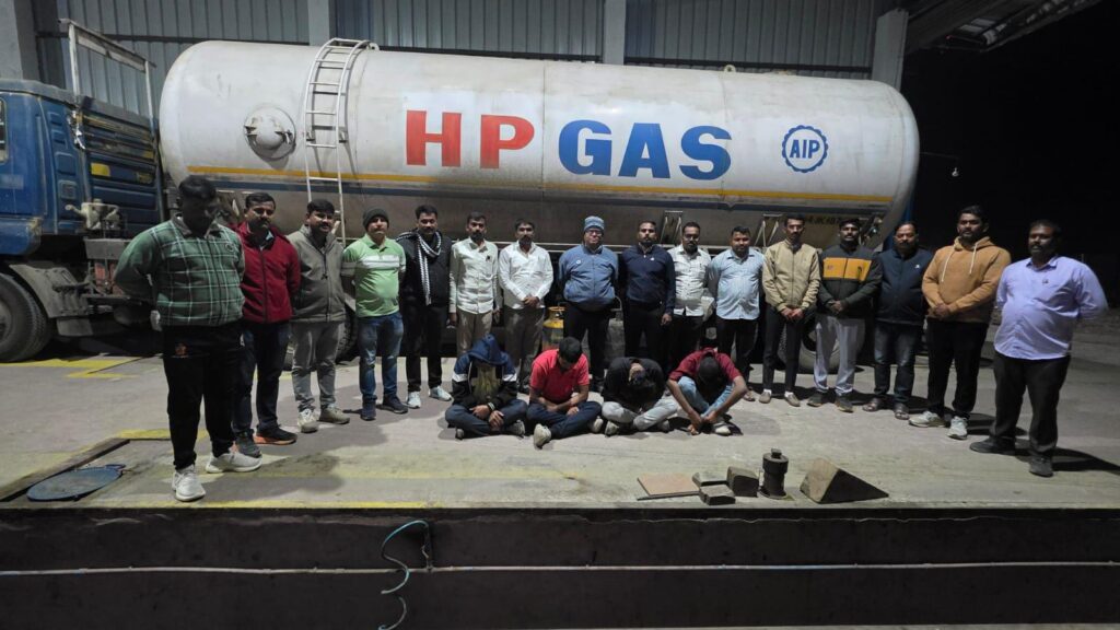 केडगाव बायपास रोडलगत असलेल्या अनुराज टॉवर/गोडाऊनमध्ये अवैधरित्या टँकरमधून व्यवसायिक गॅस टाक्यांमध्ये रिफिलिंग करत असल्याची खात्रीशीर माहिती मिळताच स्थानिक गुन्हे शाखेने धडक कारवाई करत गॅस काळाबाजाराचा मोठा रॅकेट उध्वस्त केले. या कारवाईत ४ आरोपींना ताब्यात घेण्यात आले असून गोडाऊन मालक फरार झाला आहे.