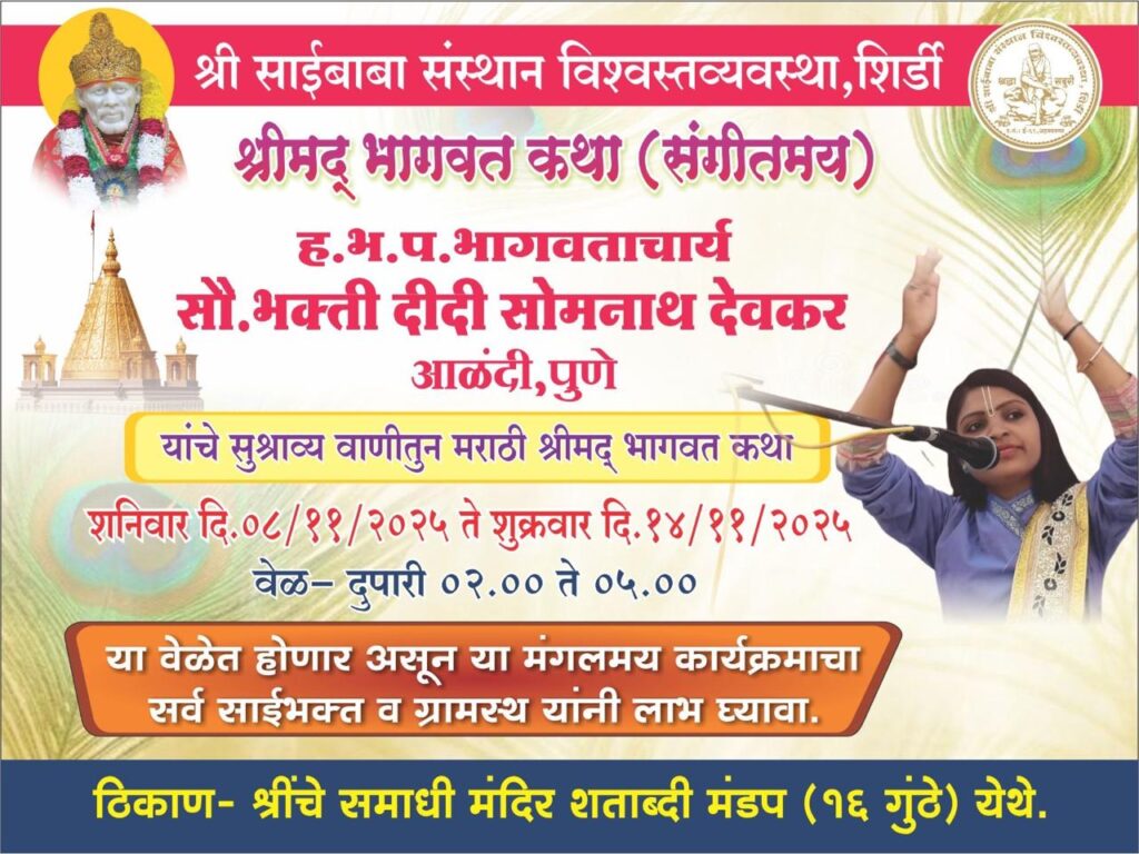 शिर्डीत श्रीमद् भागवत कथेचा शुभारंभ — भक्ती दीदींची अनोखी सेवा! एक रुपयाही न घेता सात दिवस कथा — साईनगरीत भक्तीचा सुवर्णयोग
