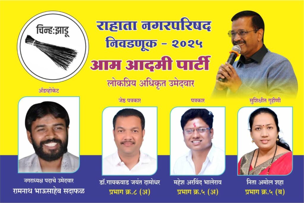 राहाता शहराचा विकास योग्य दिशेने नेण्यासाठी आणि भ्रष्टाचार झाडण्यासाठी आम आदमी पार्टीने जनतेसमोर स्पष्ट हाक दिली आहे.