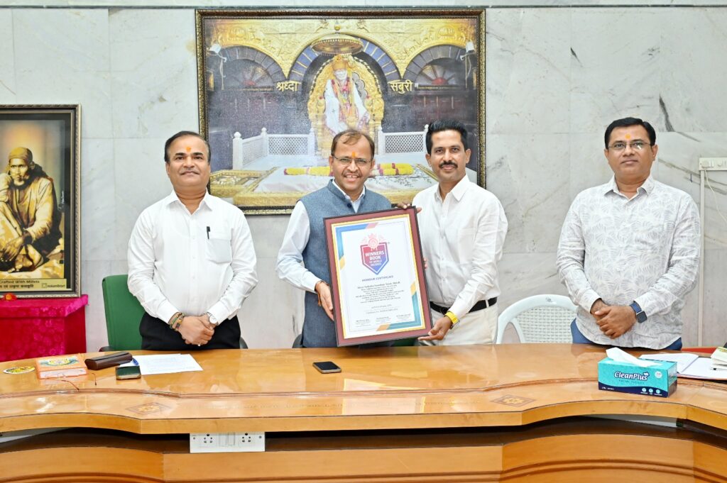 विनर्स बुक ऑफ वर्ल्ड रेकॉर्डकडून मिळालेल्या या गौरवामुळे शिर्डीचे नाव जागतिक पातळीवर आणखी उजळले असून श्री साईबाबा संस्थानसाठी हा सन्मान प्रेरणादायी आणि अभिमानास्पद ठरला आहे.