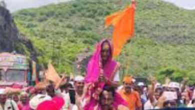 पंढरीच्या दिशेने चाललेल्या ज्ञानोबारायांच्या पालखी सोहळ्यात फलटणच्या सुंदर आजी नातवाच्या खांद्यावर बसून पंढरपूरला निघाल्यात. नातवाच्या खांद्यावर बसून विठुरायाचे त्यांना दर्शन…